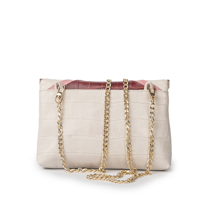 With a flap closure, removable cross-body chain strap and interior lined with kisses, this is style, on point.
