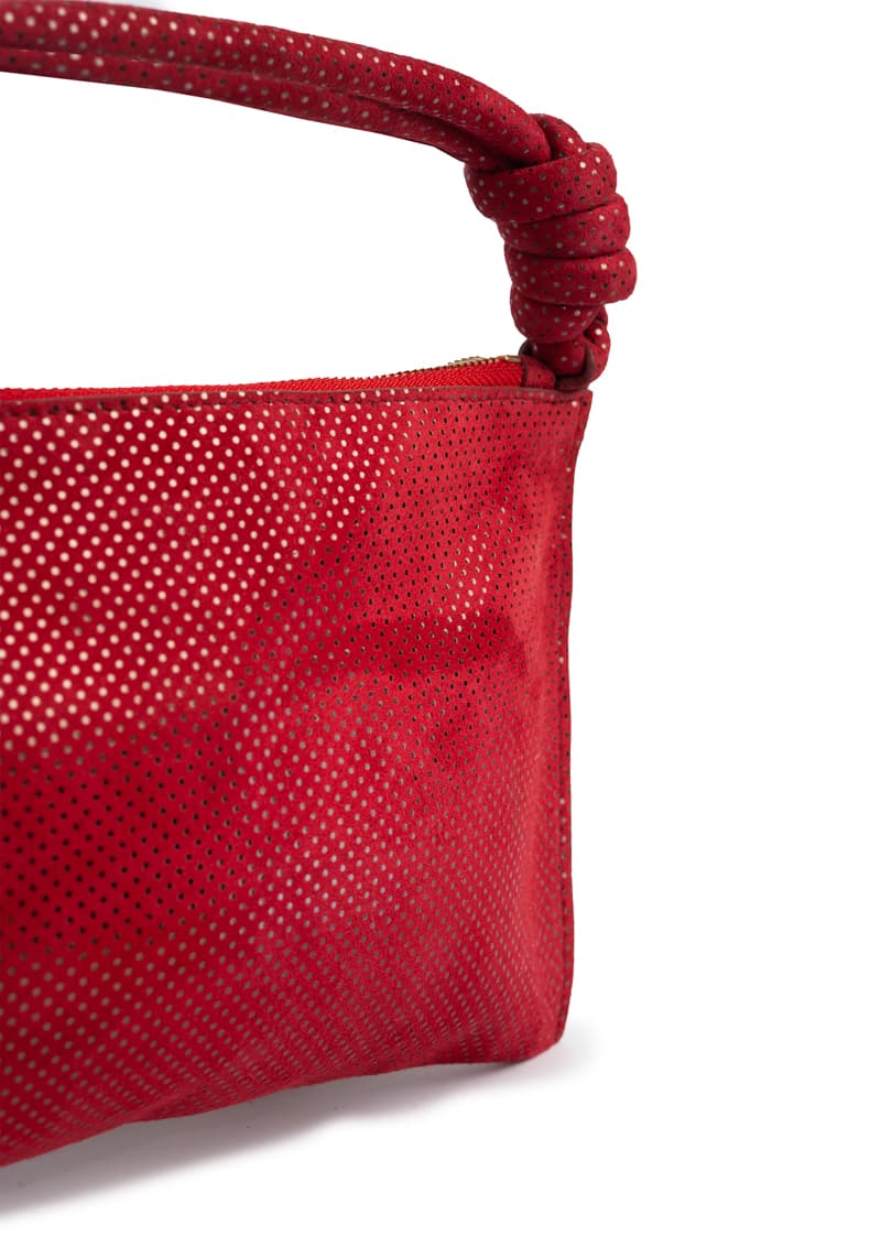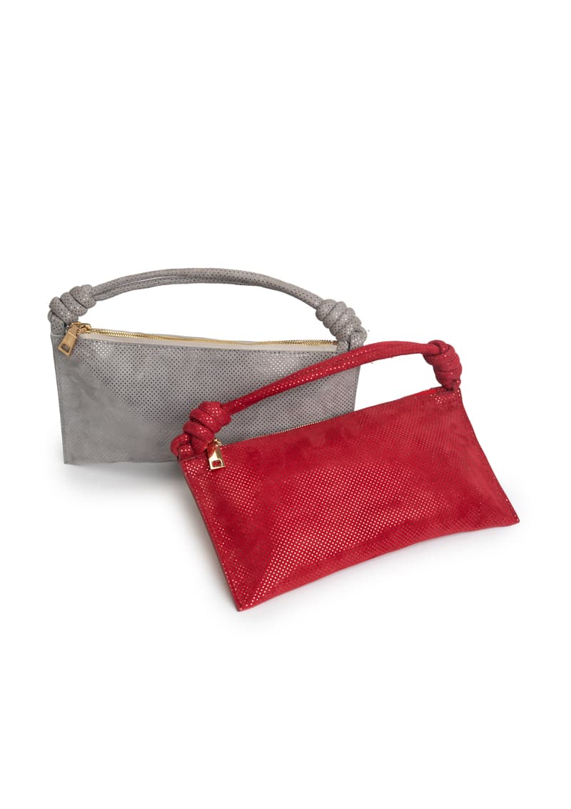 A girl's best fashion ally. Super-soft nubuck leather, given the KTO2 Bespoke style treatment: we've printed her in metallic polka dots and tie-knotted her handle. She may be light but she's no lightweight in her flair.