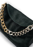 Gemini returns. She’s so popular, we’ve created two new styles. Gemini Slouch has a new style attitude, in emerald calf-hair, with the signature KTO2 Bespoke’s silver and gold chain strap.