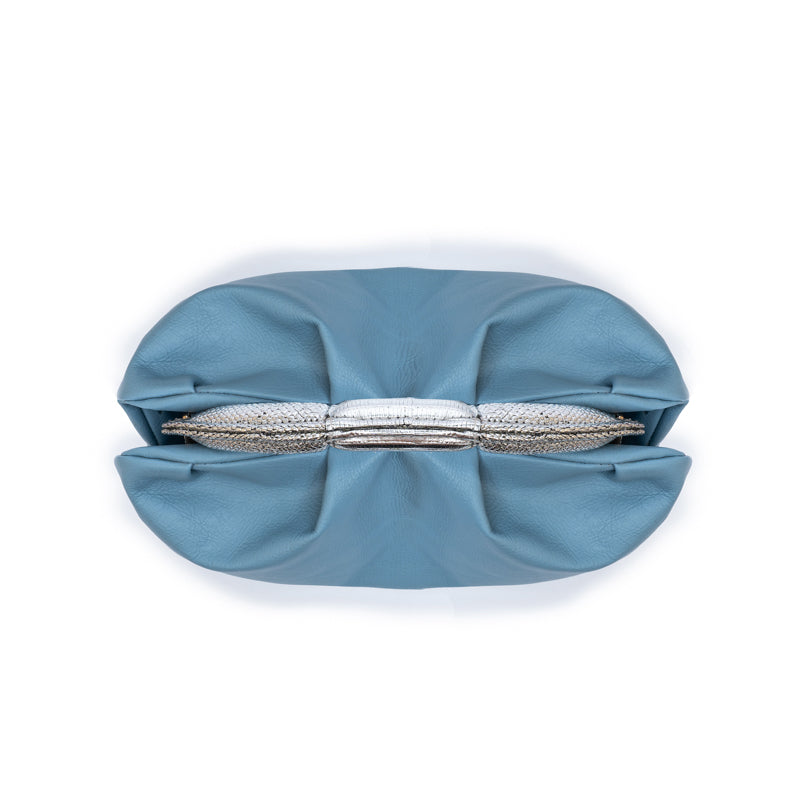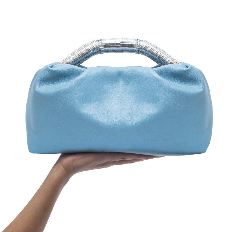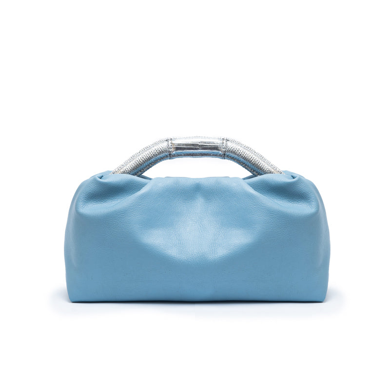 A medium sized soft pleated clutch that transcends ordinary fashion boundaries. The uniquely shaped top handle makes a bold statement, setting it apart as a chic and versatile accessory. Handcrafted from smooth premium calf leather.