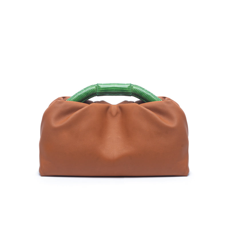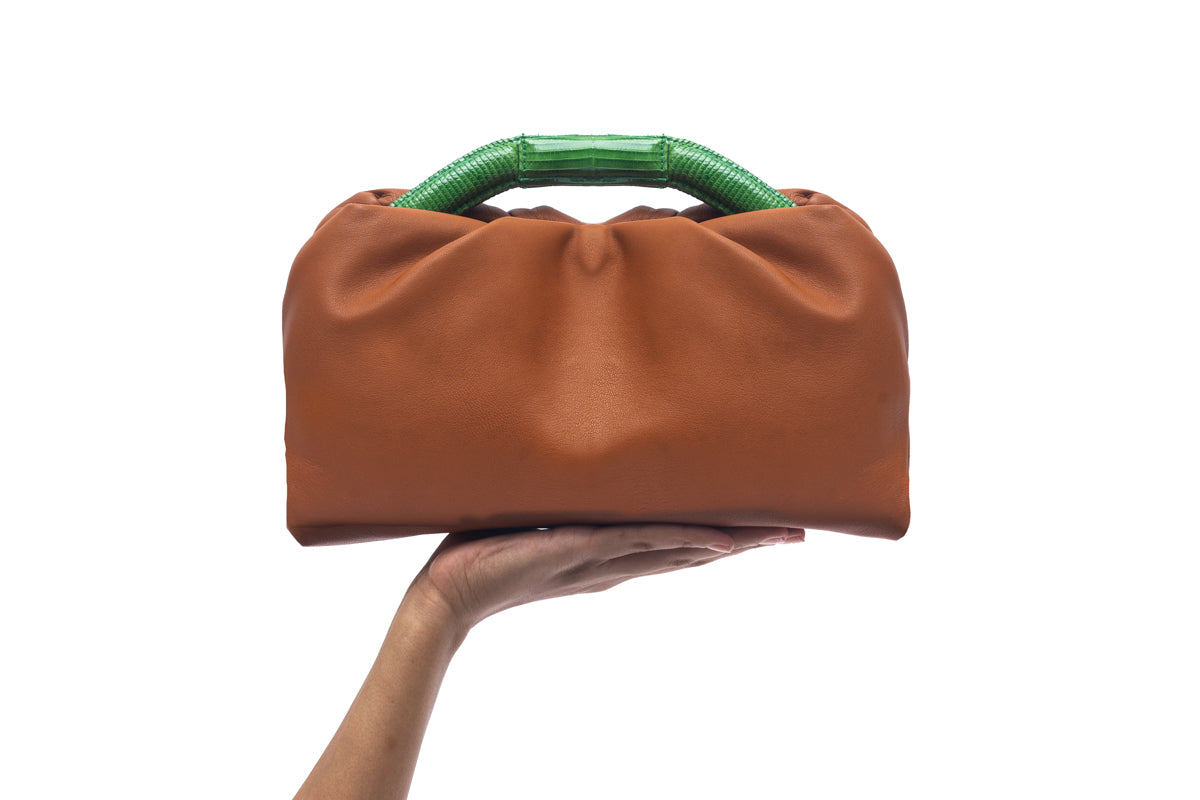 A medium sized soft pleated clutch that transcends ordinary fashion boundaries. The uniquely shaped top handle makes a bold statement, setting it apart as a chic and versatile accessory. Handcrafted from smooth premium calf leather.