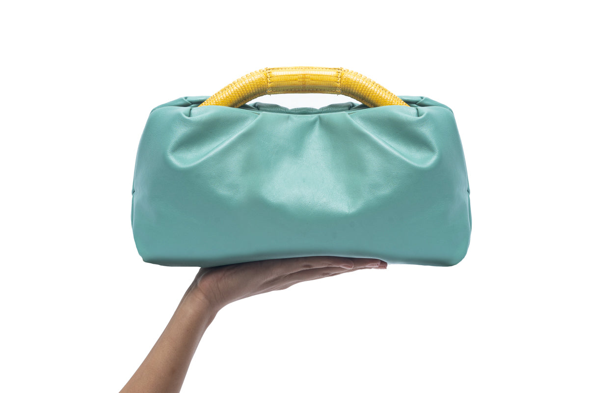 A medium sized soft pleated clutch that transcends ordinary fashion boundaries. The uniquely shaped top handle makes a bold statement, setting it apart as a chic and versatile accessory. Handcrafted from smooth premium calf leather.