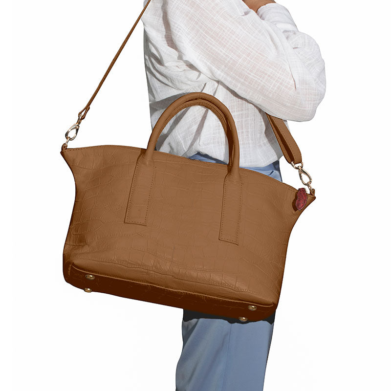 Carry flexes her fashion muscle in a down-sized version, the KTO2 Bespoke medium carryall, with all our signature bells and whistles. She serves up style aces, balancing easily in the crook of your arm, or taking a soft shoulder bag approach. She may become your favourite bag by day, every day. Stop, now, you might just make us blush.