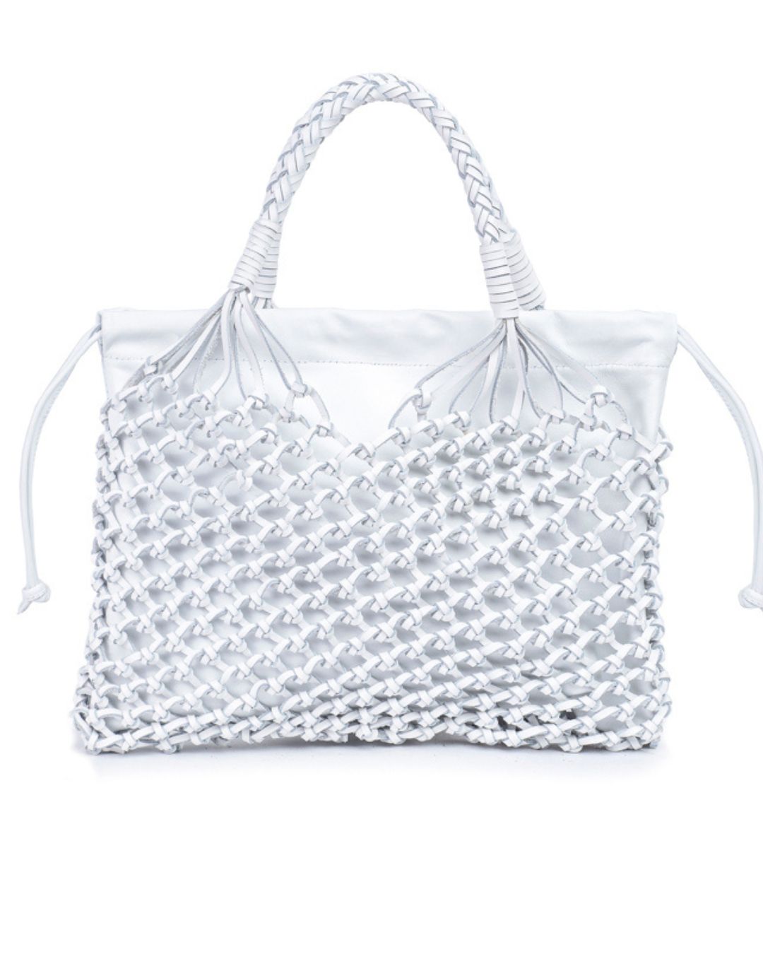 The drawstring leather insert keeps your essentials secure, while the thoughtfully designed wrapped shoulder straps provide comfortable carrying, whether nestled on your shoulder or swinging effortlessly at your side.