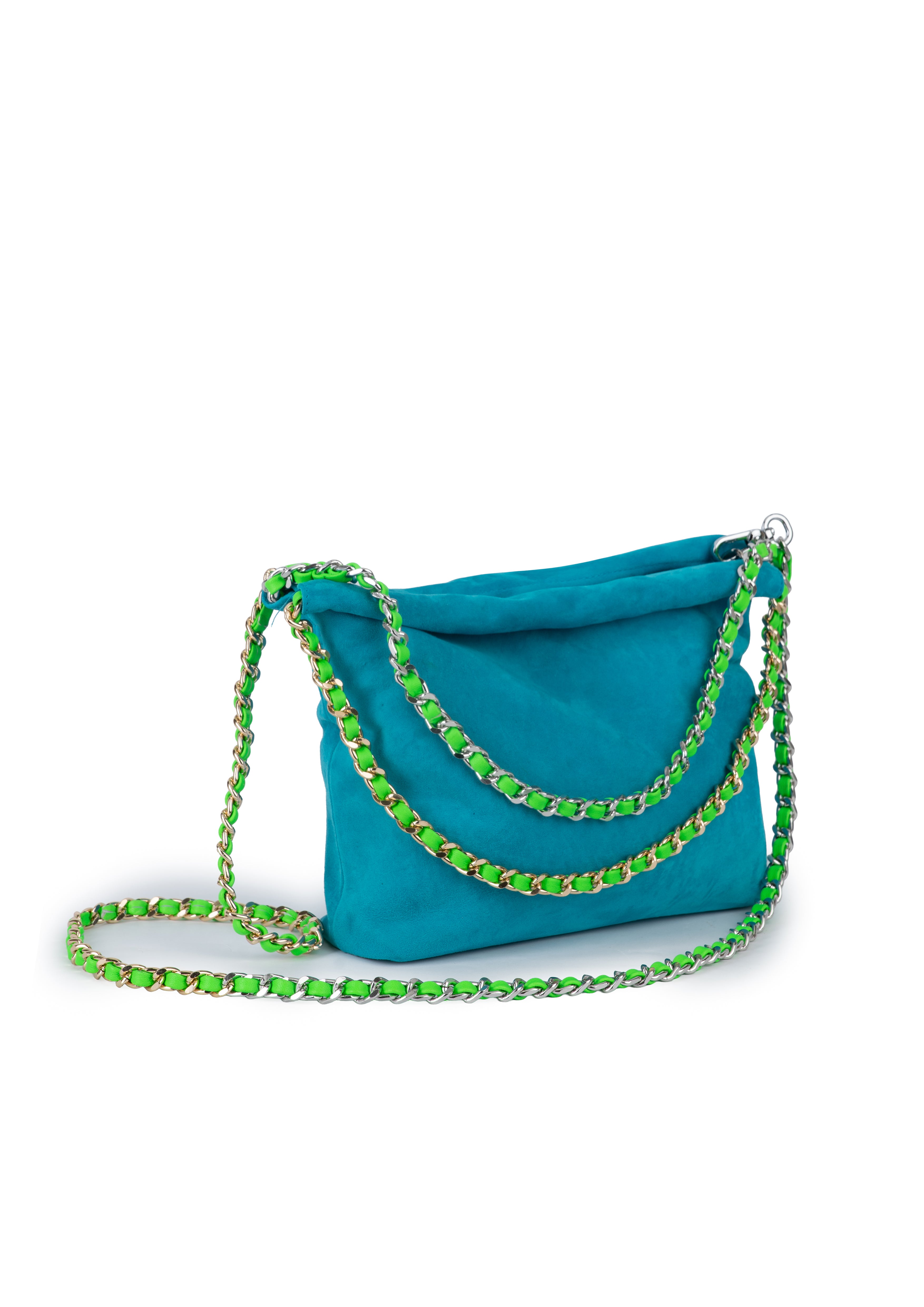 She's the latest take on our bestselling Gemini collection. In KTO2's signature super soft suede or calf hair, Gemini Neon – with her hot fluorescent ribboned chain strap and roomy interior – is the glow up every wardrobe needs.