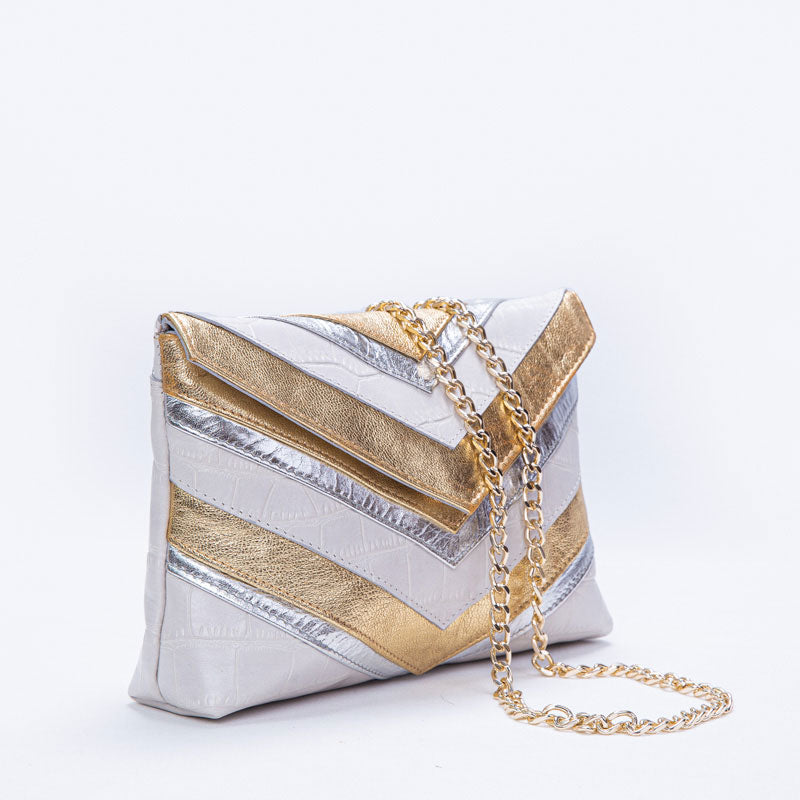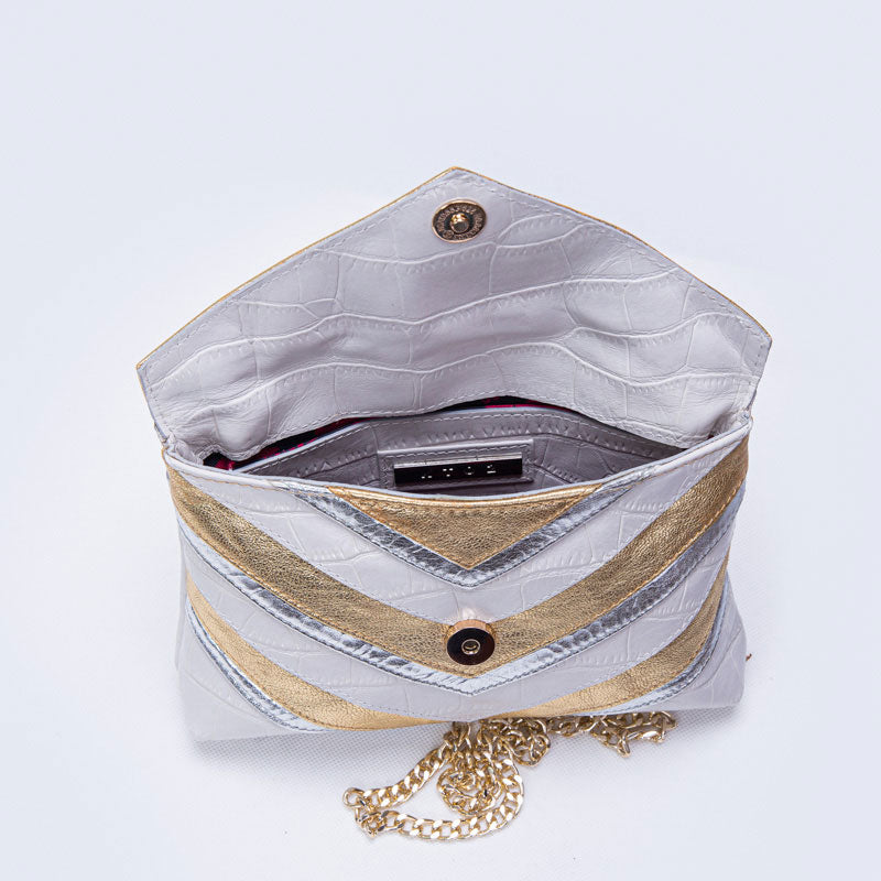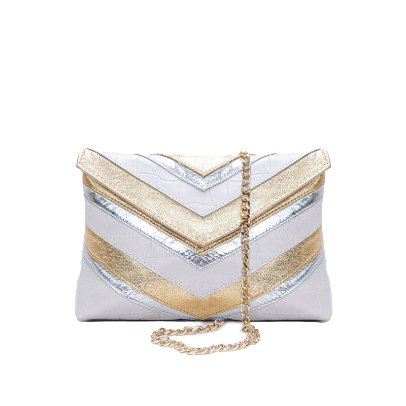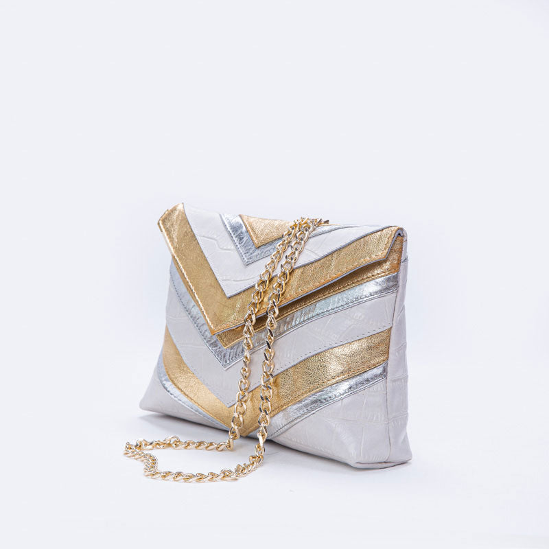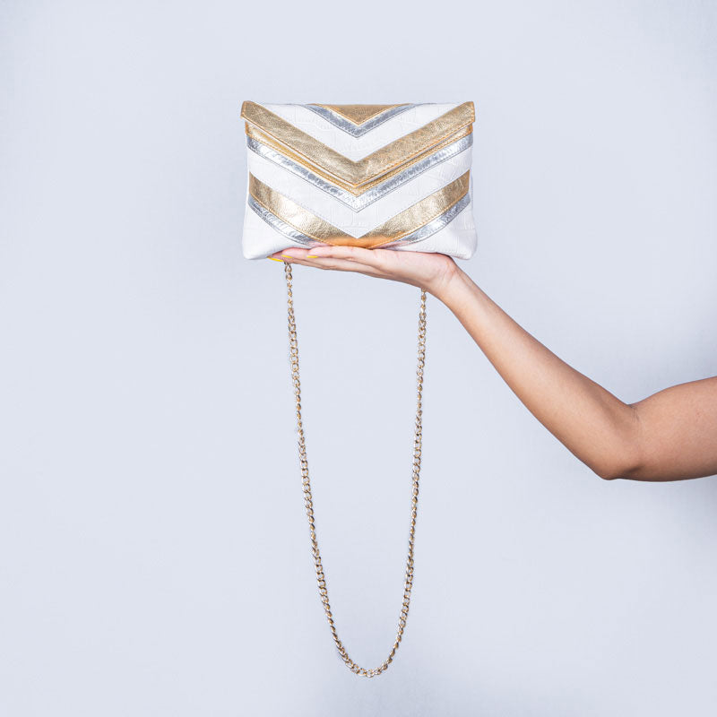 CHEVRON PUFF | WHITE, SILVER & GOLD