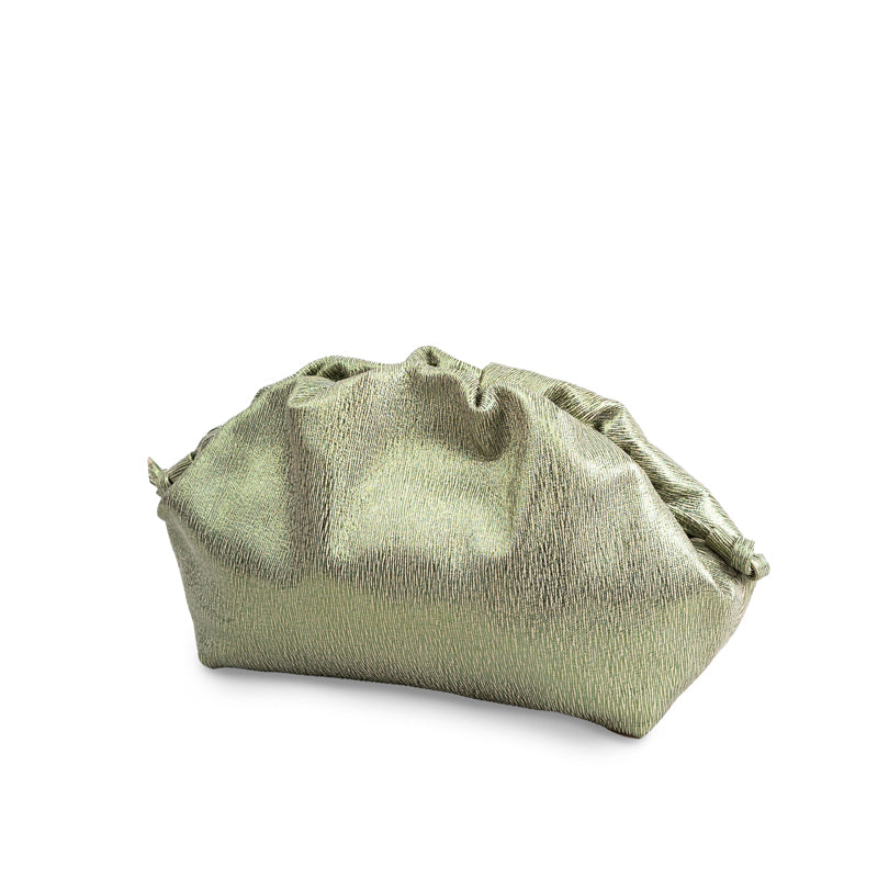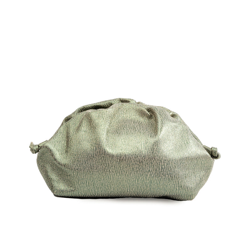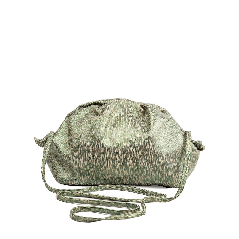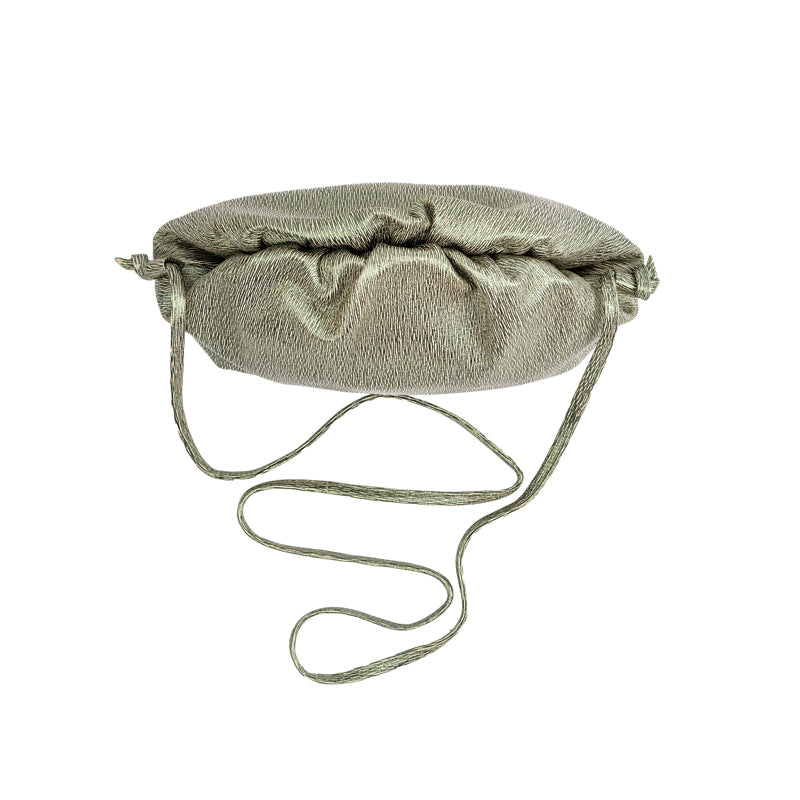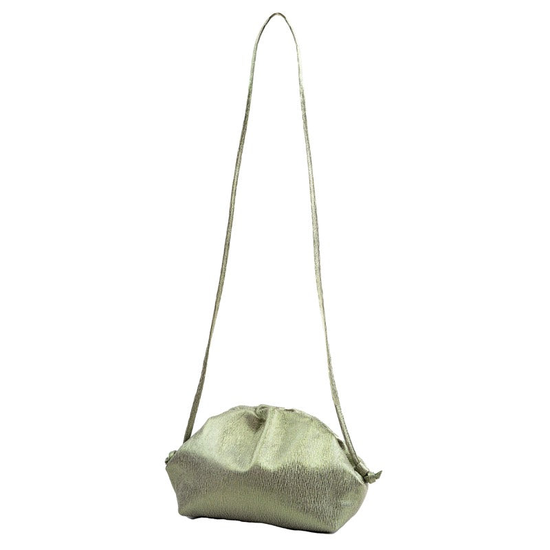 This timeless and sculpted-yet-slouchy shape is perfect for any occasion. The hand-knotted drawstrings provide an easy and comfortable carry, while the detachable strap allows for effortless transition from a crossbody to a clutch bag.