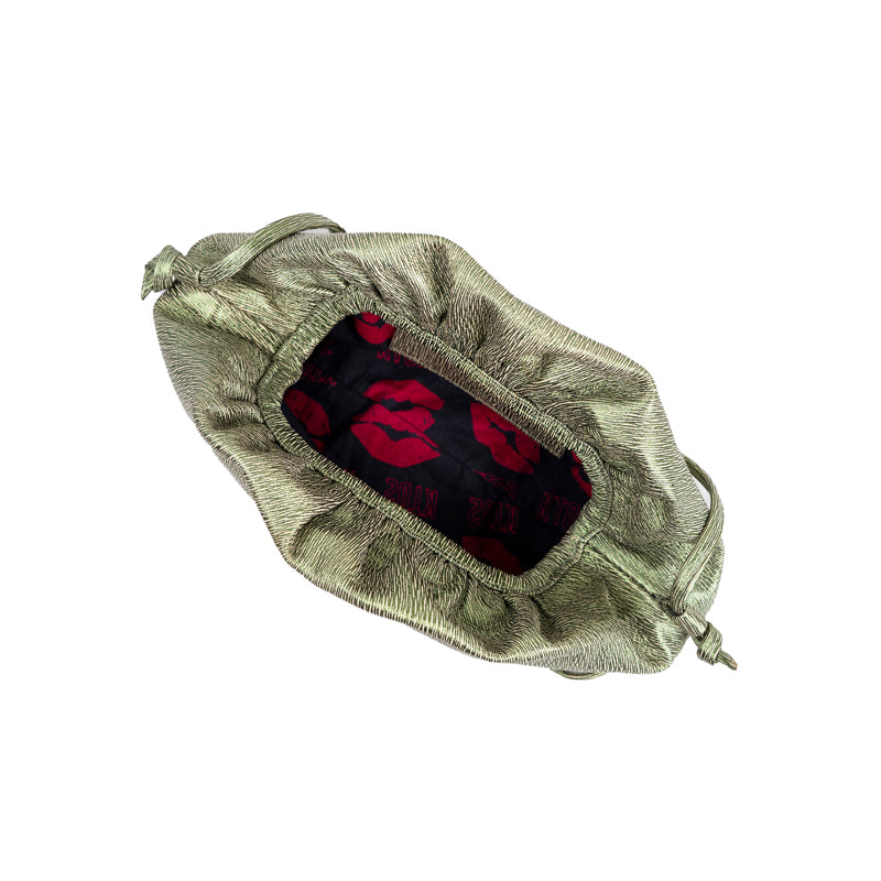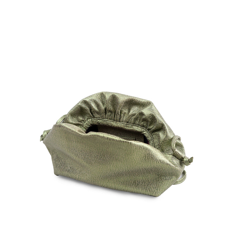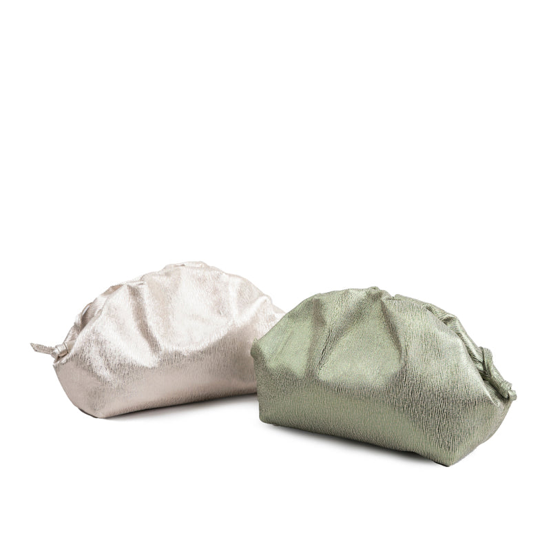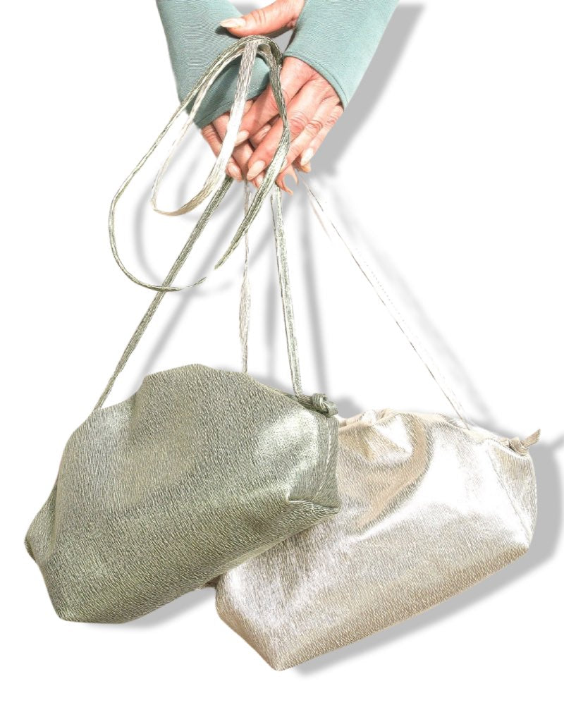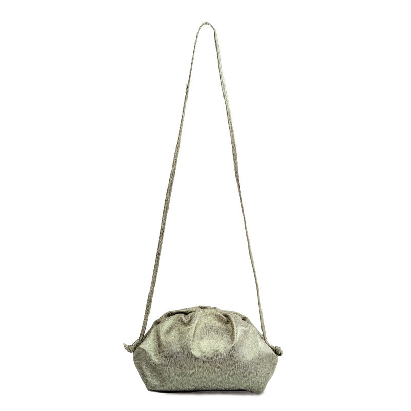 This timeless and sculpted-yet-slouchy shape is perfect for any occasion. The hand-knotted drawstrings provide an easy and comfortable carry, while the detachable strap allows for effortless transition from a crossbody to a clutch bag.