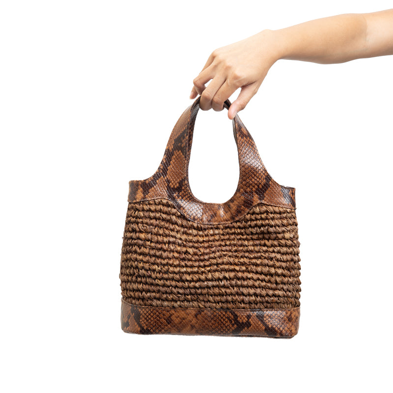LADY RAFFIA BUCKET BAG | BROWN