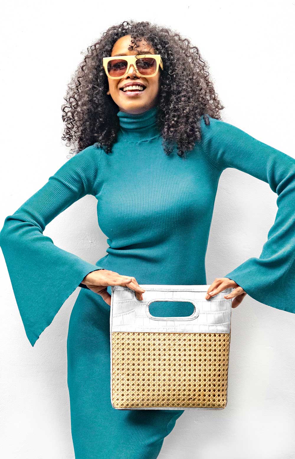 This handheld rattan stunner is sleek in its simple silhouette, but inside, it keeps it all together with two interior pockets and one zip pocket.
