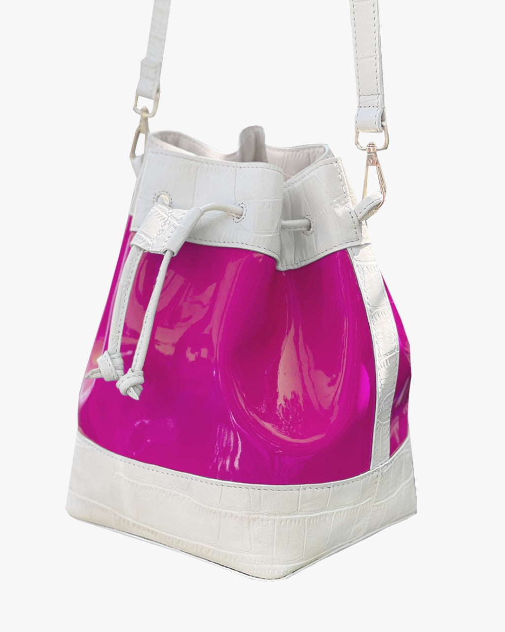 JELLY BUCKET BAG | WHITE & HOT PINK