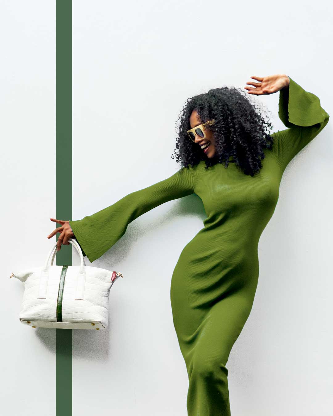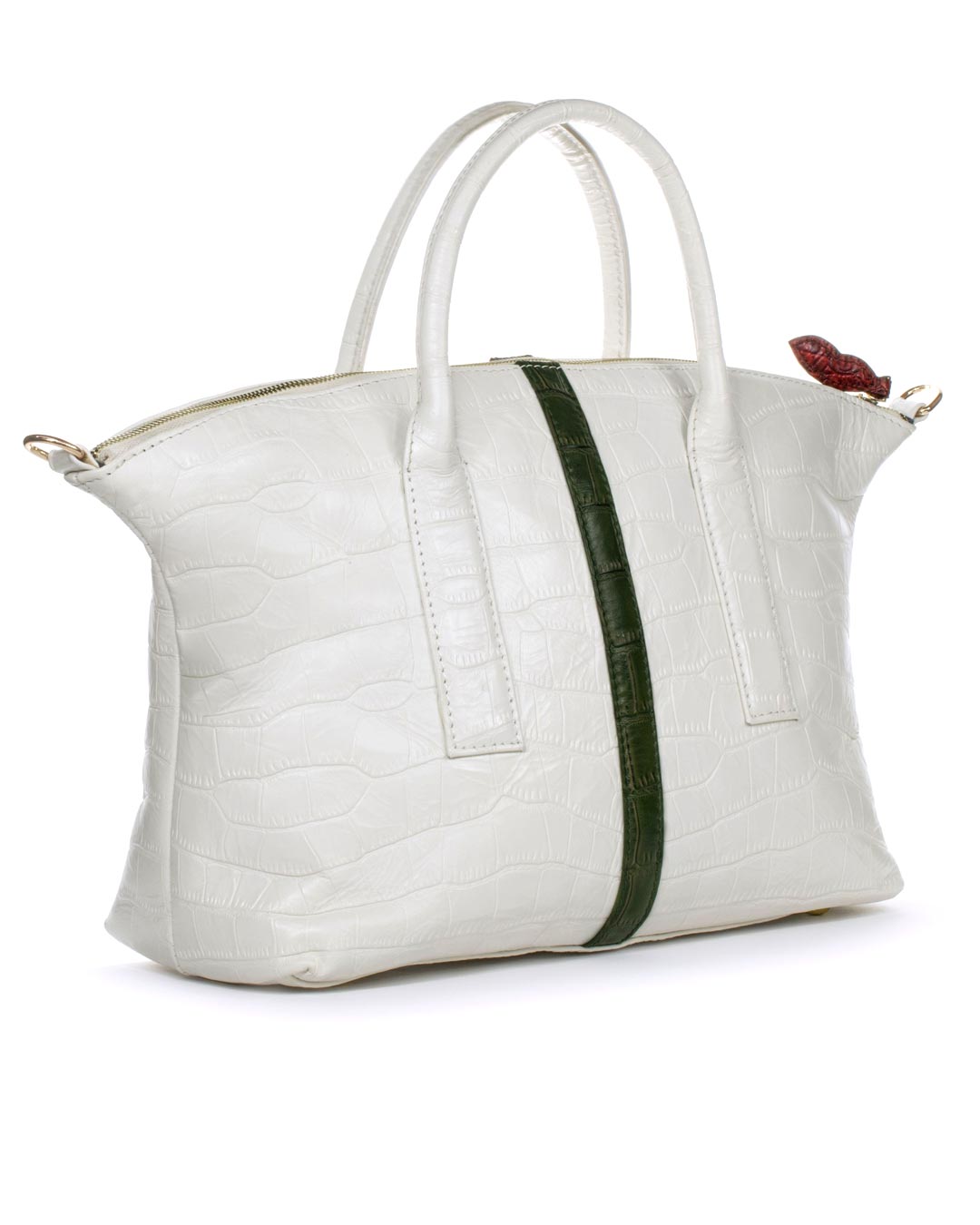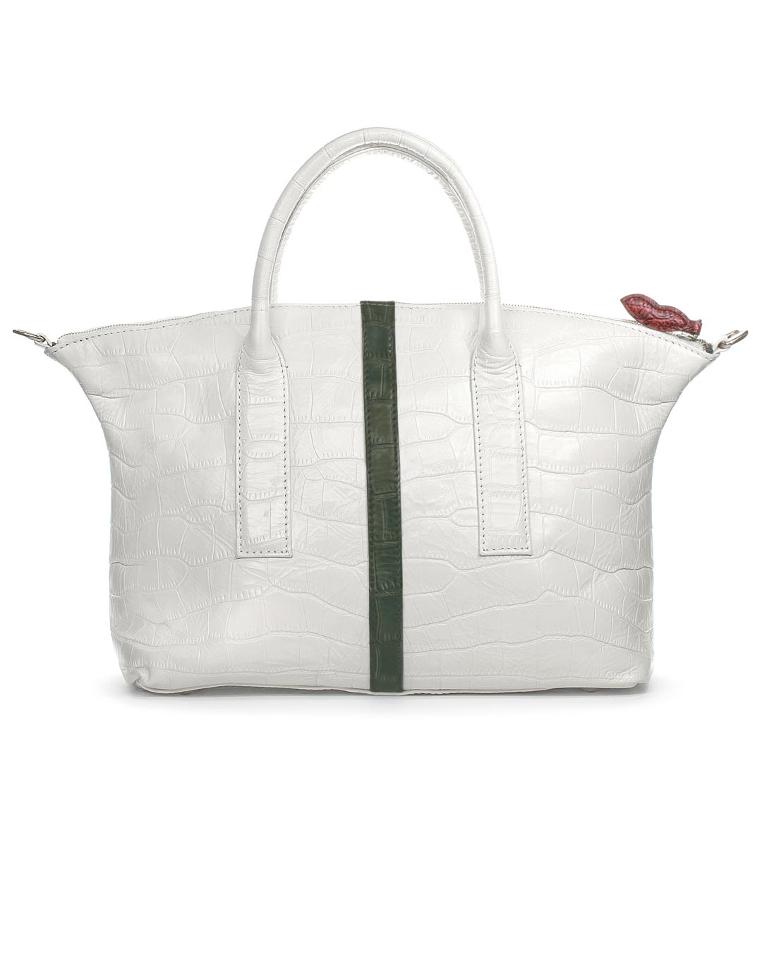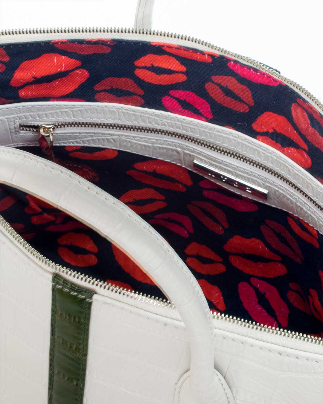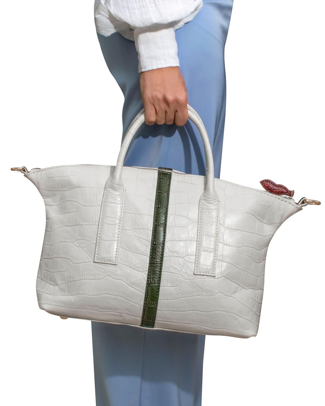 Carry flexes her fashion muscle in a down-sized version, the KTO2 Bespoke medium carryall, with all our signature bells and whistles. She serves up style aces, balancing easily in the crook of your arm, or taking a soft shoulder bag approach. She may become your favourite bag by day, every day, but a racing stripe shows off her, well, racier side. Stop, now, you might just make us blush.